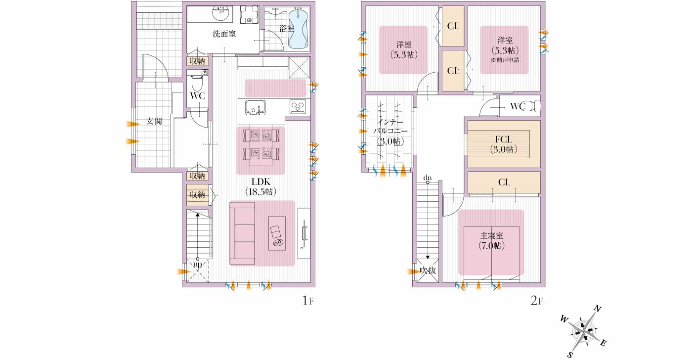 3LDK +W.I.C +SCL +ランドリールーム